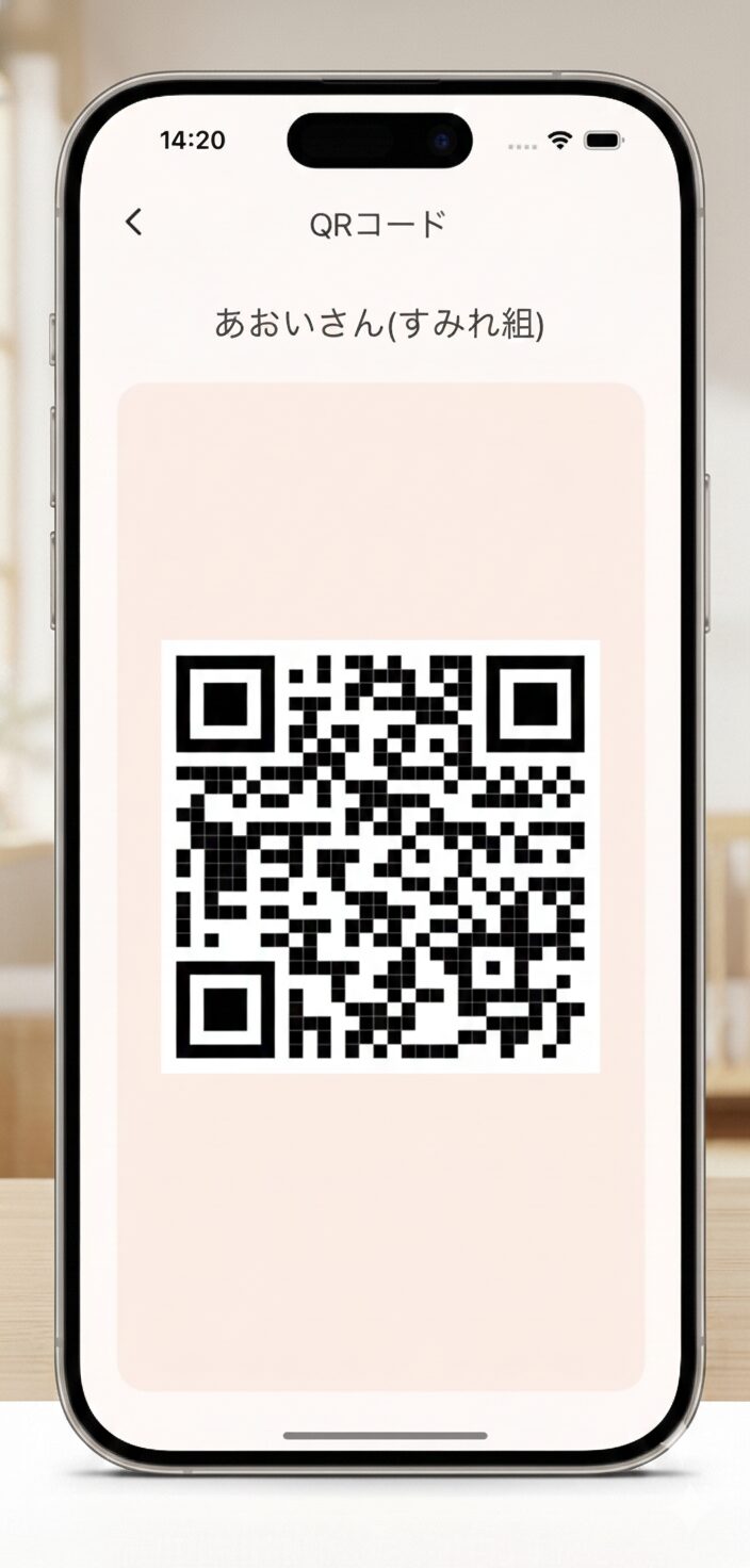 ・画面に園児の名前と、専用のQRコードが即座に表示されます。