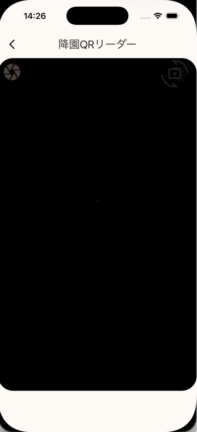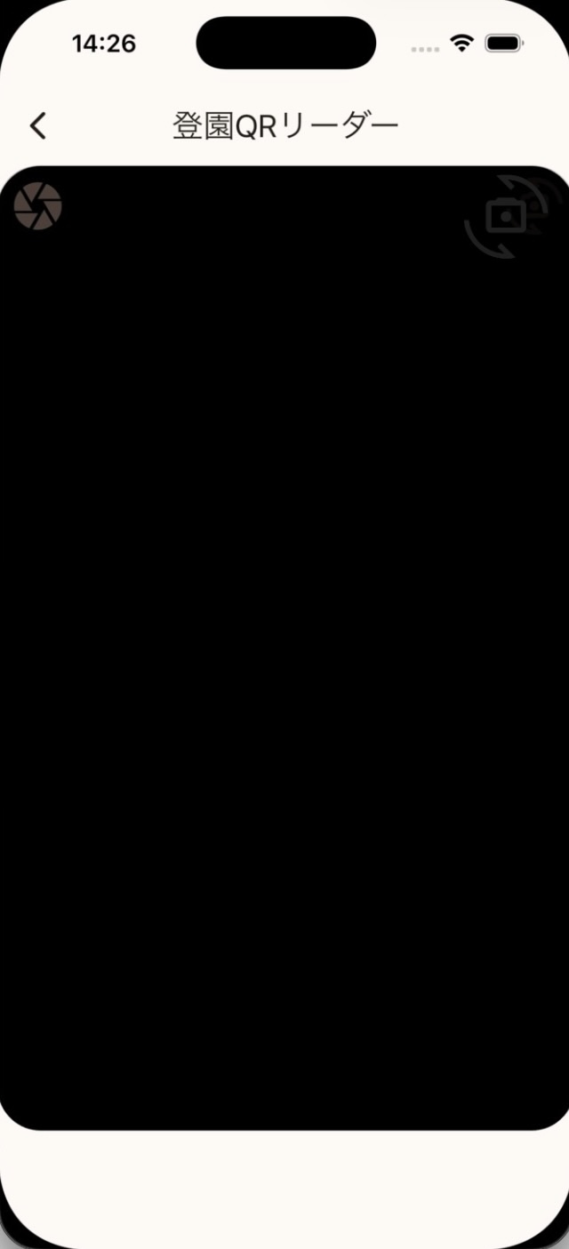 ・画面がカメラモードに切り替わったら、園児の登降園記録用 QRコードを画面中央の枠内に写してください。